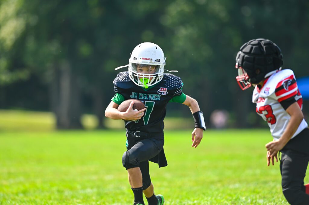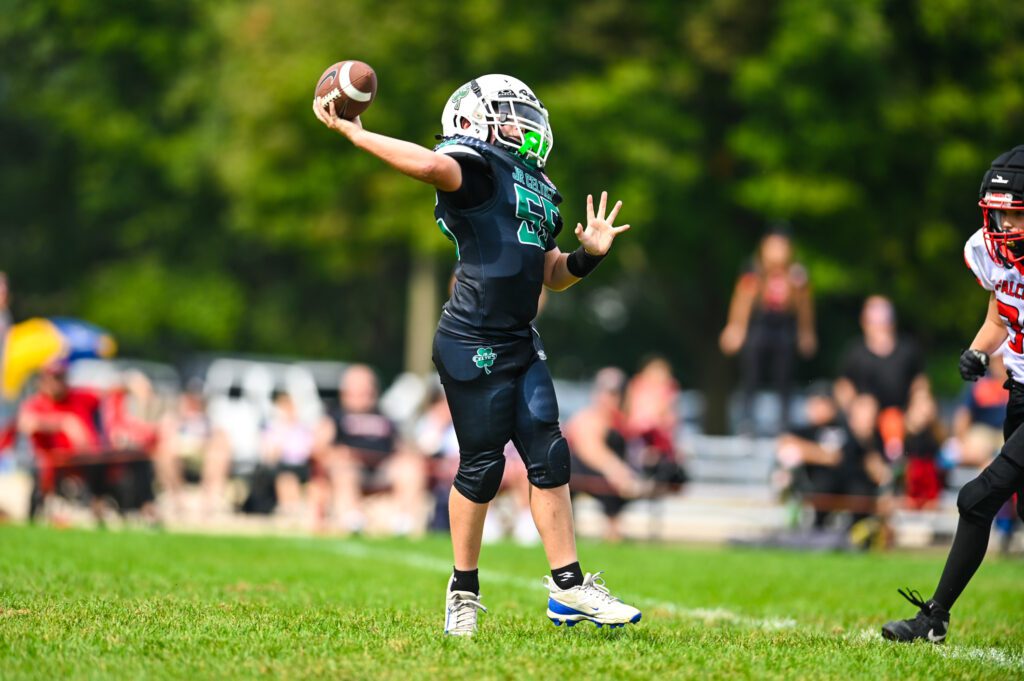 The Jr. Celtics broke open the game with a long drive that extended 13 plays and covered 80 yards. The Boyer-to-Kastys connection was the key moment of the possession, as Kastys hauled in a long bomb before getting tackled at the Falcons’ 25-yard line. The Jr. Celtics converted a fourth down play to keep the drive alive on the 10th play. Boyer tossed a 7-yard TD pass to Elijah Bogle to close out the memorable possession for a 20-0 lead with 5:42 left in the fourth quarter.