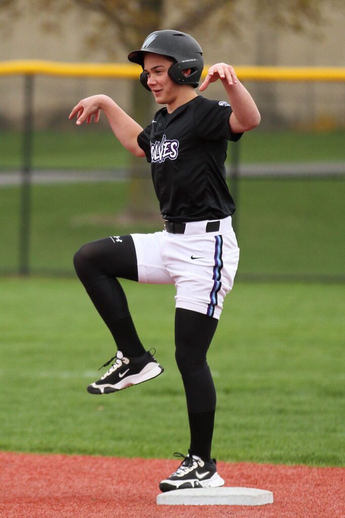 The Wolves speed then went on to generate two runs in their first at bats. Speedster and leadoff man’ Fred Sackley was hit by a pitch, that quickly turned out to be as good as a triple as he stole second and third consecutively.