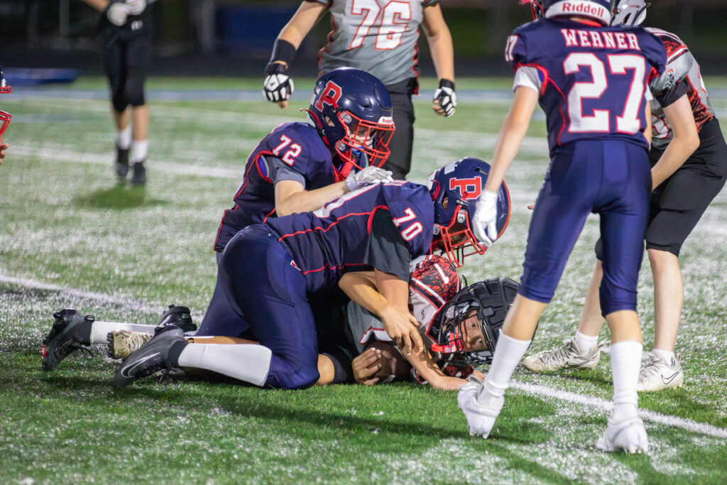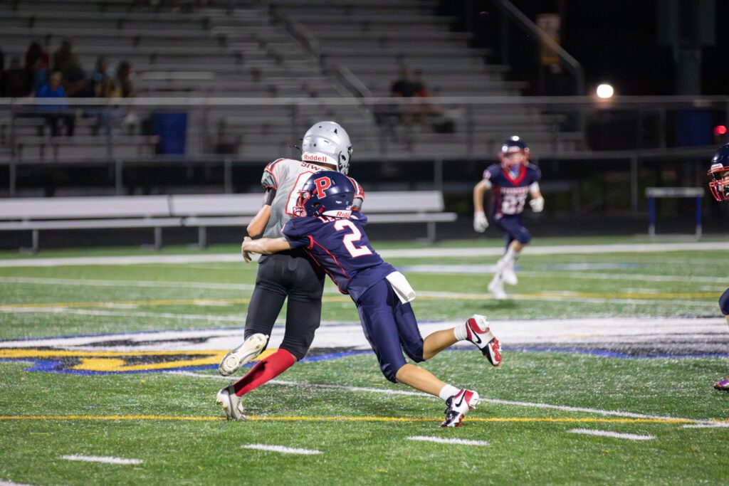 The Pioneers’ defense quickly followed up, with standout tackles from Drake Ulaszek, Michael Sraga, and Burgert halting New Lenox’s progress. But the Jr. Knights struck back, tying the game at 6–6 midway through the second quarter.