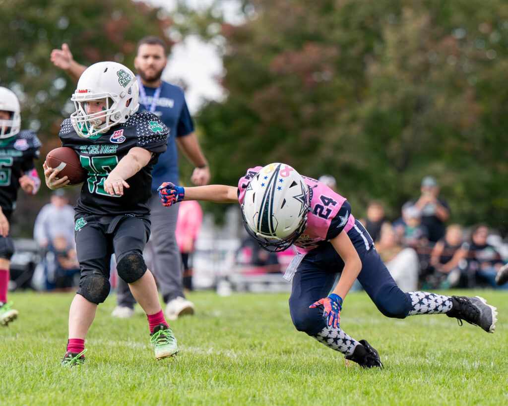 His kick bounded off the bar and fell backwards in the Jr Celtics’ crushing 7-6 loss to the Addison Cowboys in Pop Warner league play at Main Park on Saturday, October 111.