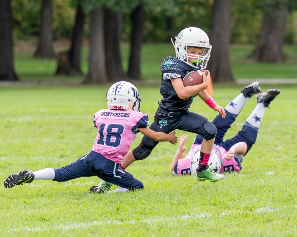 In the closing moments of the first half, Adent broke free for a 27-yard run. Cesek followed with his own sharp run. The team ran out of time, and the Jr Celtics got to halftime trailing by just one score. More significantly the team showed signs of life, and breaking free of the early disappointment.