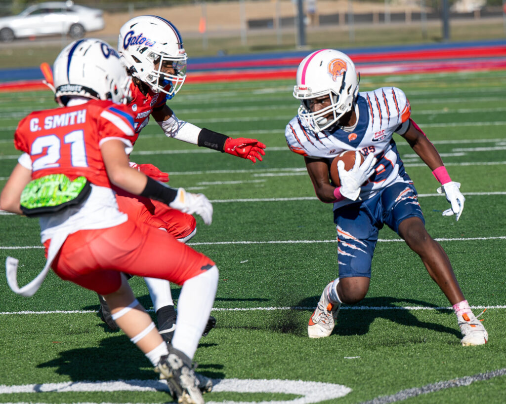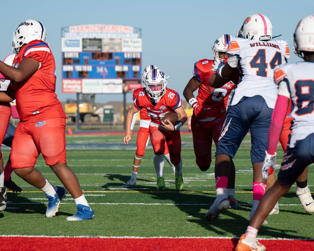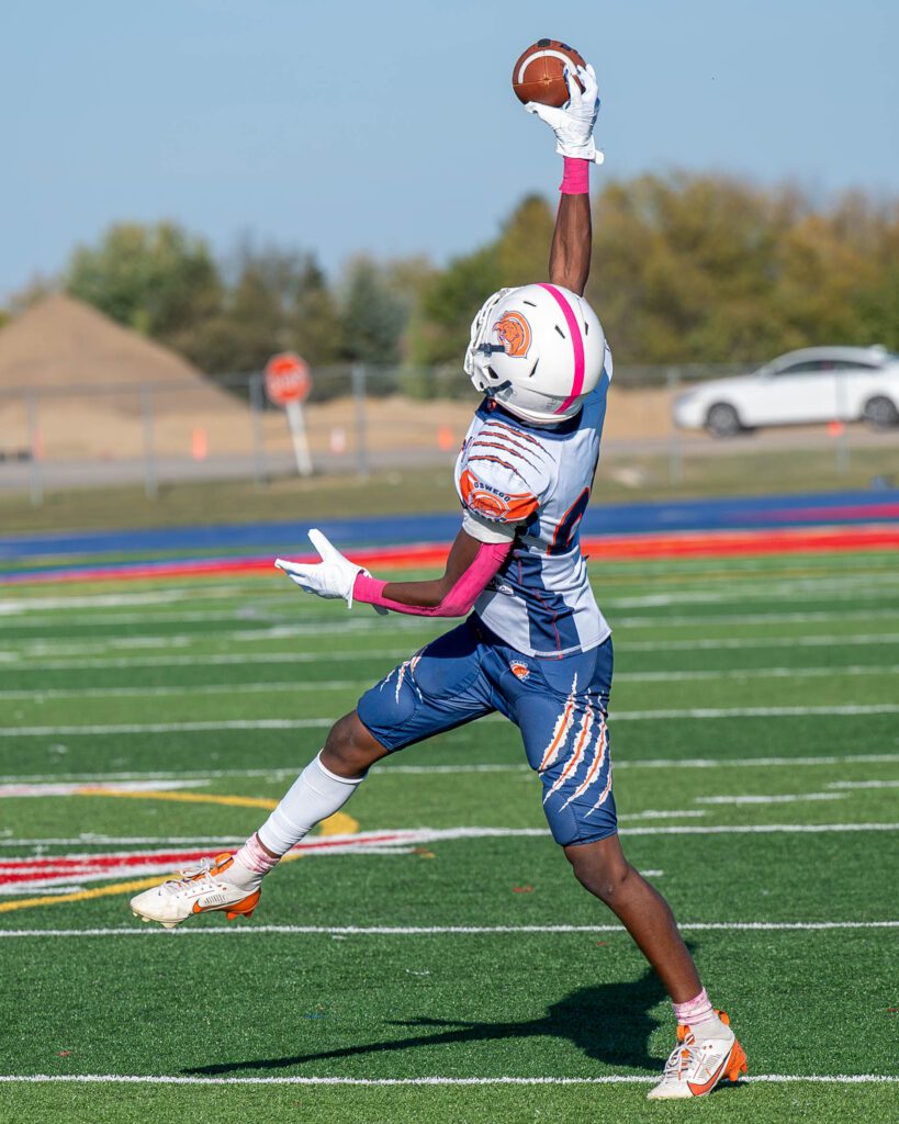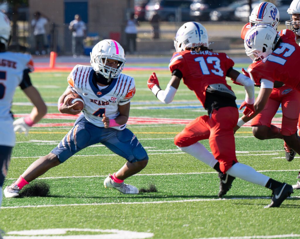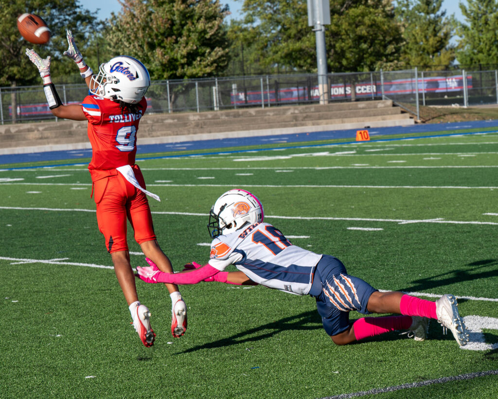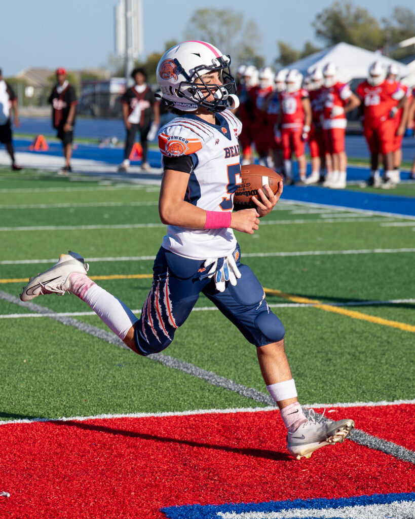 Oruche’s two-play, 80-yard touchdown drive to close out the first half tipped the balance in the 20-16 victory over the Oswego Bears in the Pop Warner Game of the Week at Marmion Academy on Sunday, October 5.