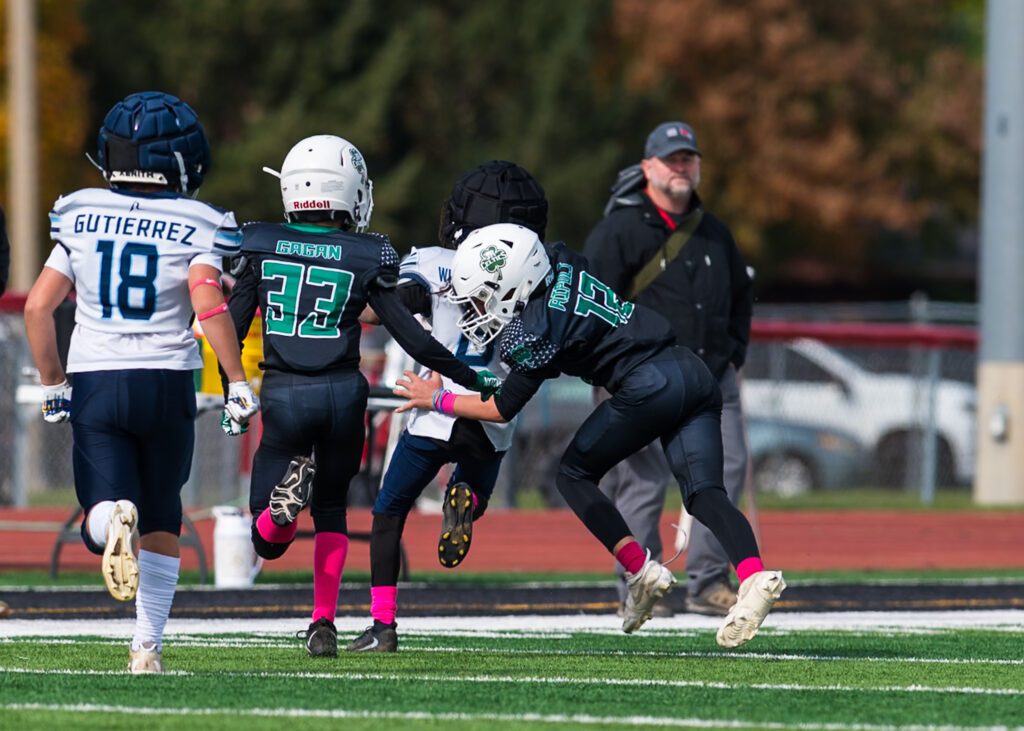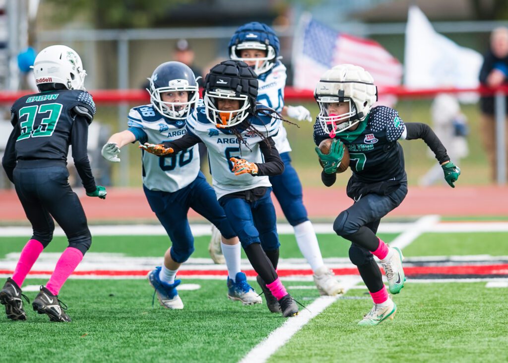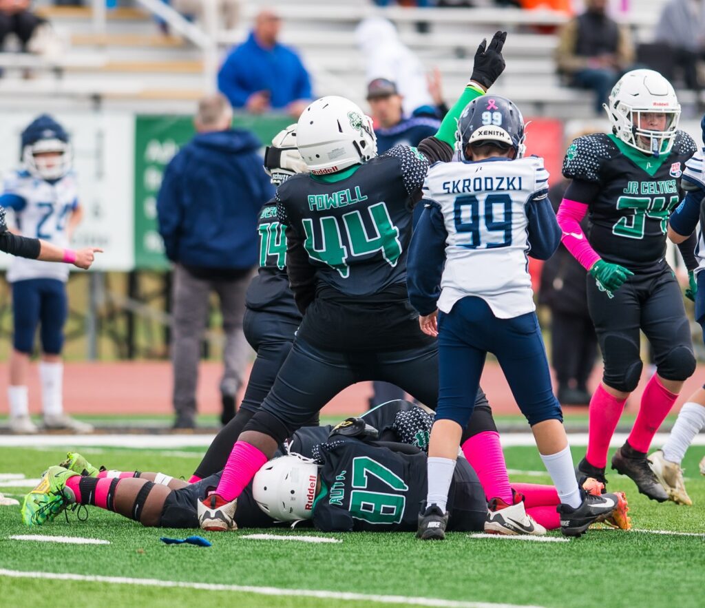 The Argos didn’t sit on their lead. They pressed the Jr. Celtics defense moving the ball despite the defensive efforts of Jadyn Brigham, Cullum, Tompkins, Ripoli and Vosholler. Brigham came away with three solo tackles of his own but it only slowed the Argonauts. they eventually broke off a 35-yard run to the endzone and upped their lead to 21-6, essentially putting the game away in the Win column with 1:19 left in the game.