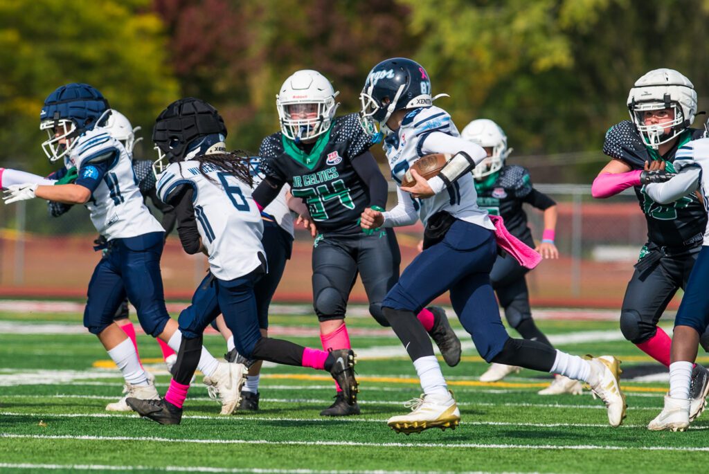 After the Argos score, the Jr. Celtics used Simons legs and Quarterback’ Rhett Johnson arm to try and get back in the game. They proceeded to move the ball upfield on their 10-play drive that took them into the fourth quarter.