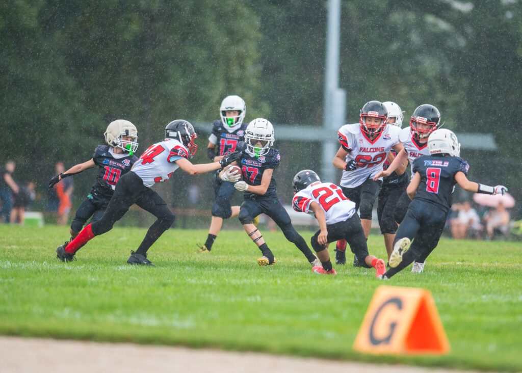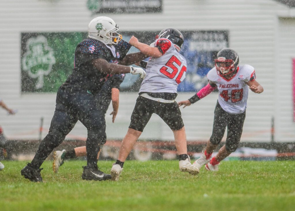 At the start of the second half, Elliott Bodine recovered an onside kick to start the third quarter, but then the rainstorm hit to spoil the Jr. Celtics’ drive and momentum.