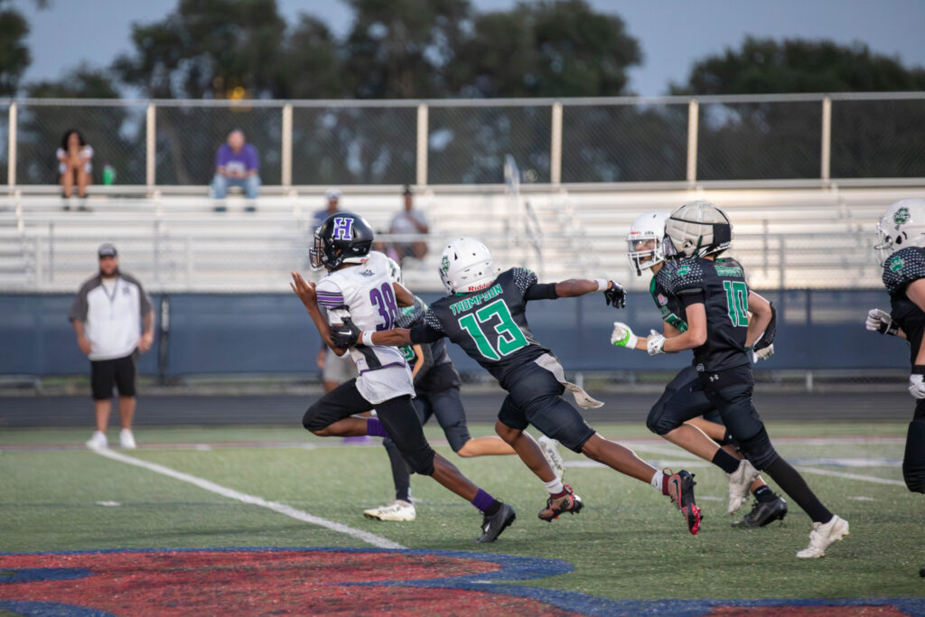 But the argument could be made that Thompson single-handedly caused the demise of the Whip-Purs’ defense. Thompson, who rushed for an astonishing 242 yards before halftime, had a scoring romp of 80 yards to up the lead to 16-8.