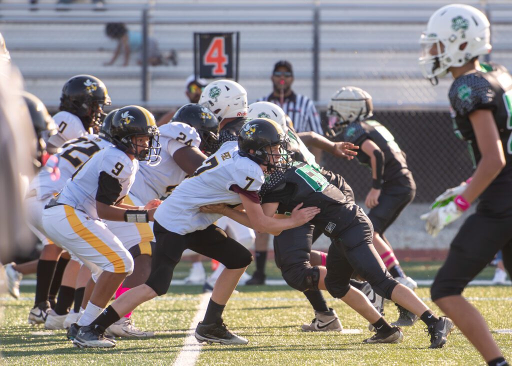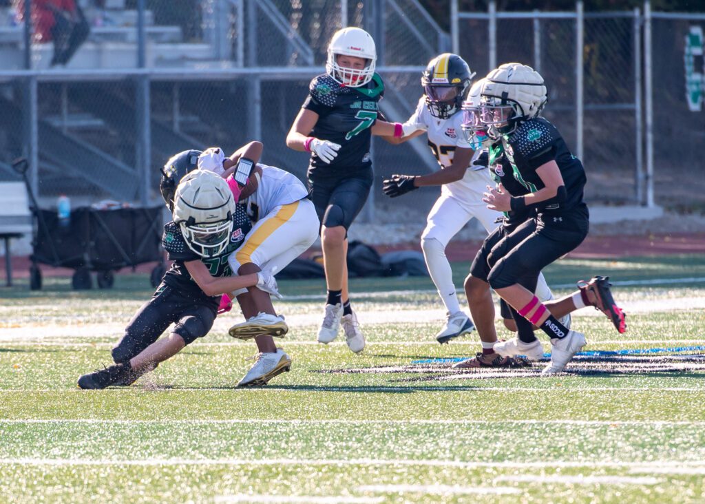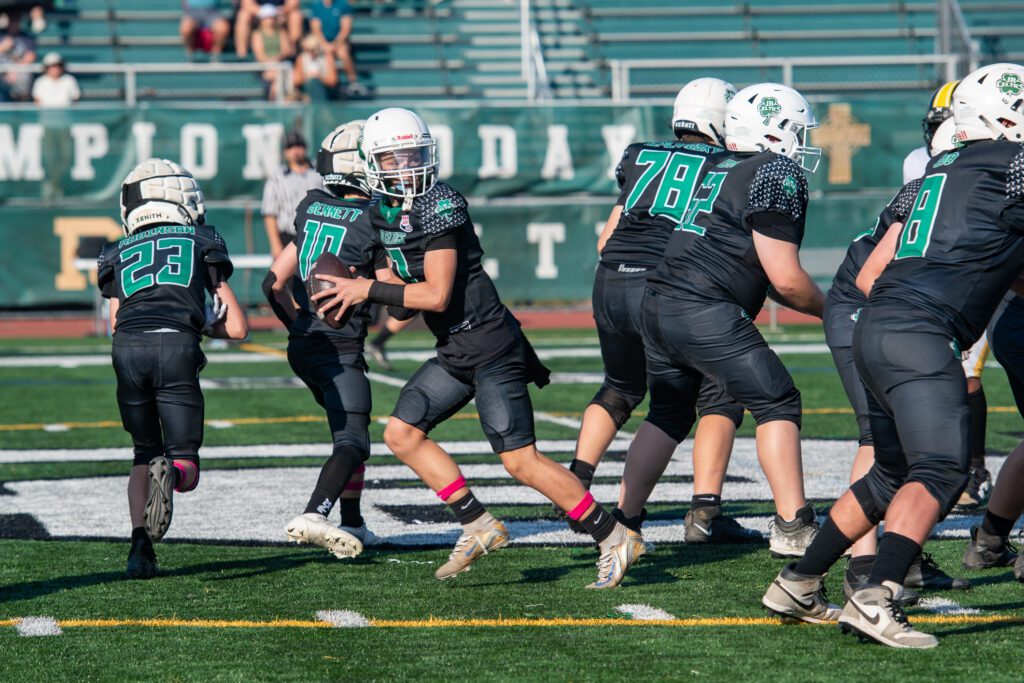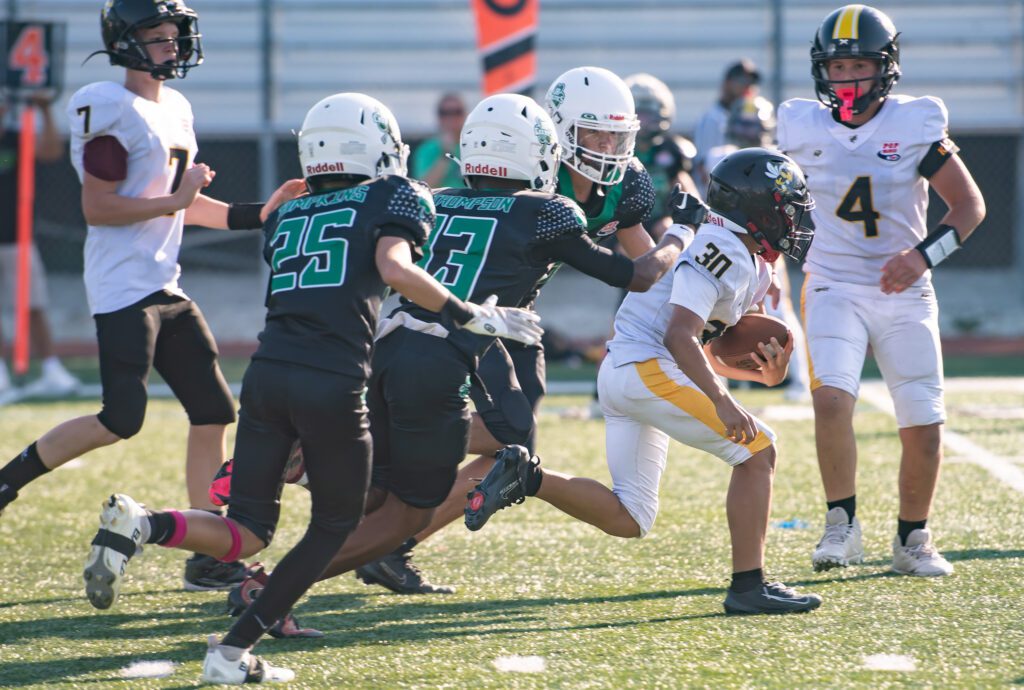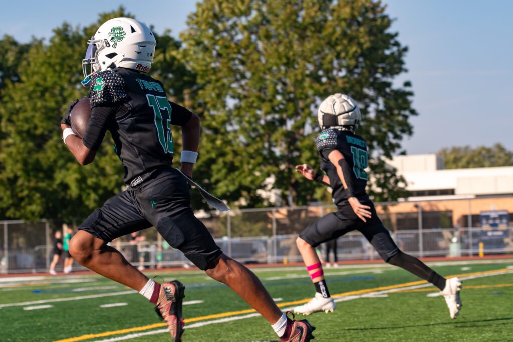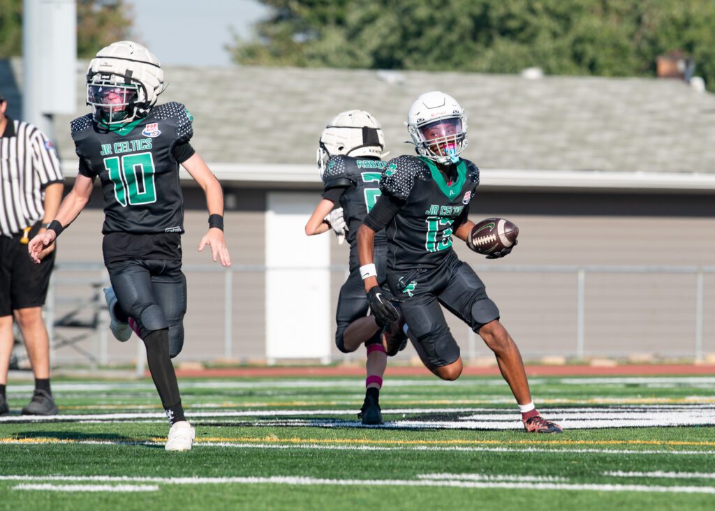The Jr. Celtics responded with a one-play scoring drive. Anthoni Stefos had an exciting 16-yard TD run for an 8-0 advantage. After recovering an onside kick, the home team attacked with Nakahti Thompson bursting loose for a 50-yard touchdown run for a 16-0 lead.
