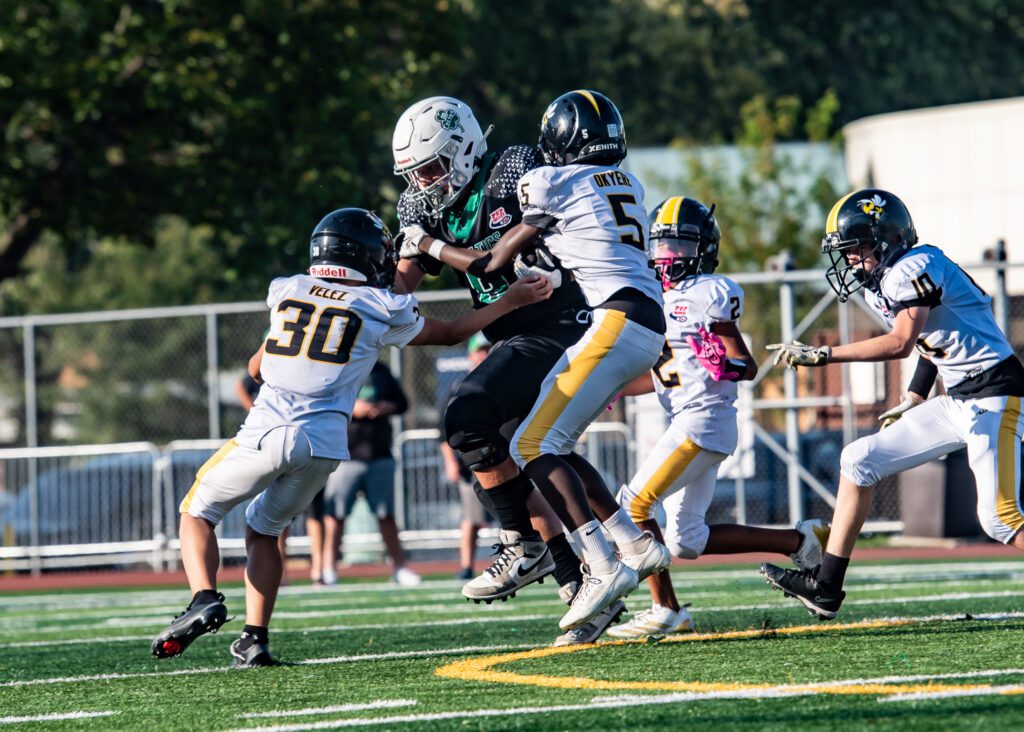 On eighth-grade recognition night, the 13U football grappled with some shoddy tackling, allowed a few big plays but pieced together a memorable showing on offense to post a 38-6 victory over the Darien Swarm at Bishop Kaffer Stadium.
