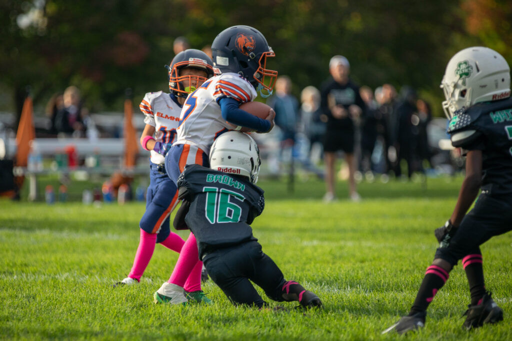On its opening series, Elmhurst caught a vulnerability in the middle defense of the Jr Celtics and broke free for a 53-yard touchdown run.