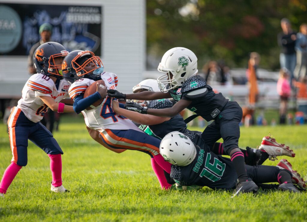 Showing they play both sides of the ball, Lepore and White collaborated on another five-yard loss. The excellent defensive stand forced a short punt that gave the Jr Celtics the ball at the Bears’ 32-yard line.