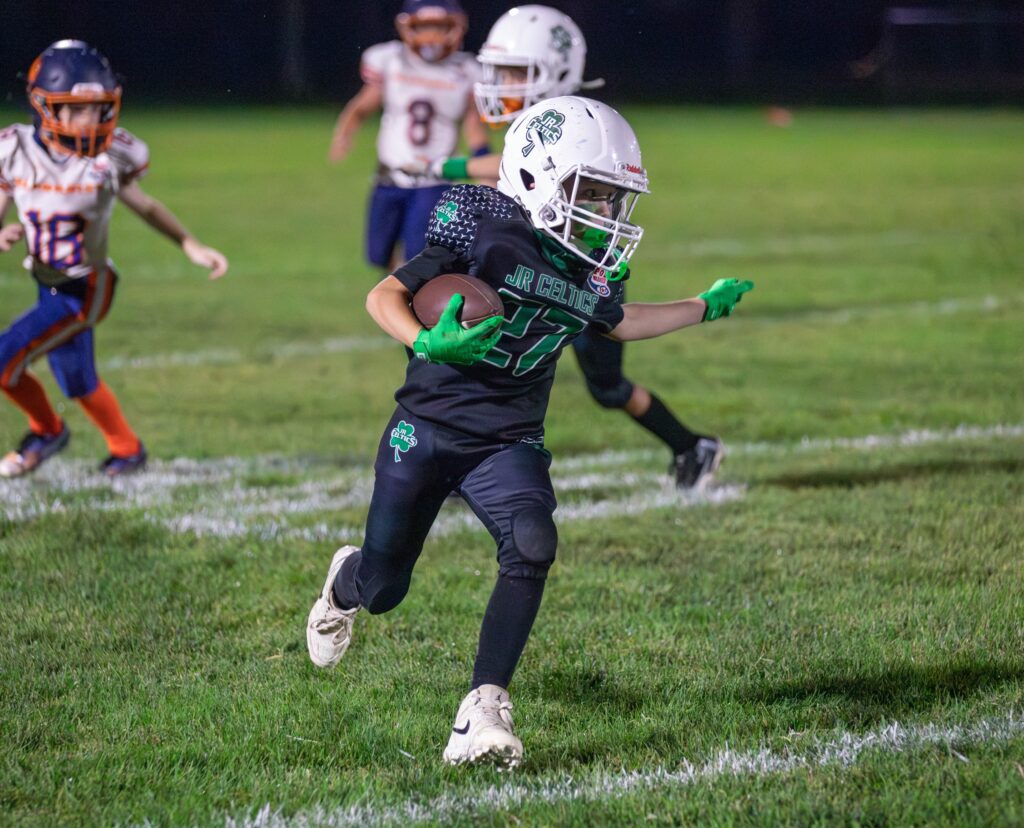 A strong run on the opening play of the third quarter was offset by a fumble. Despite the disadvantages, the Jr Celtics endured and played hard until the very end.
