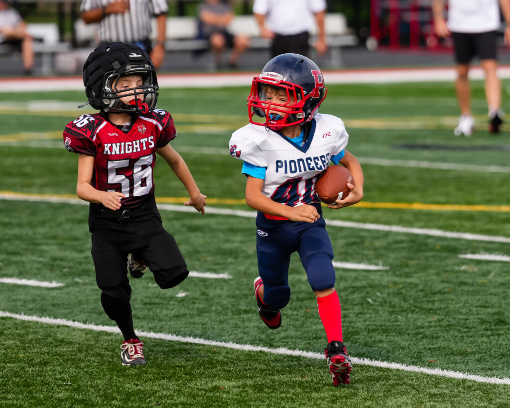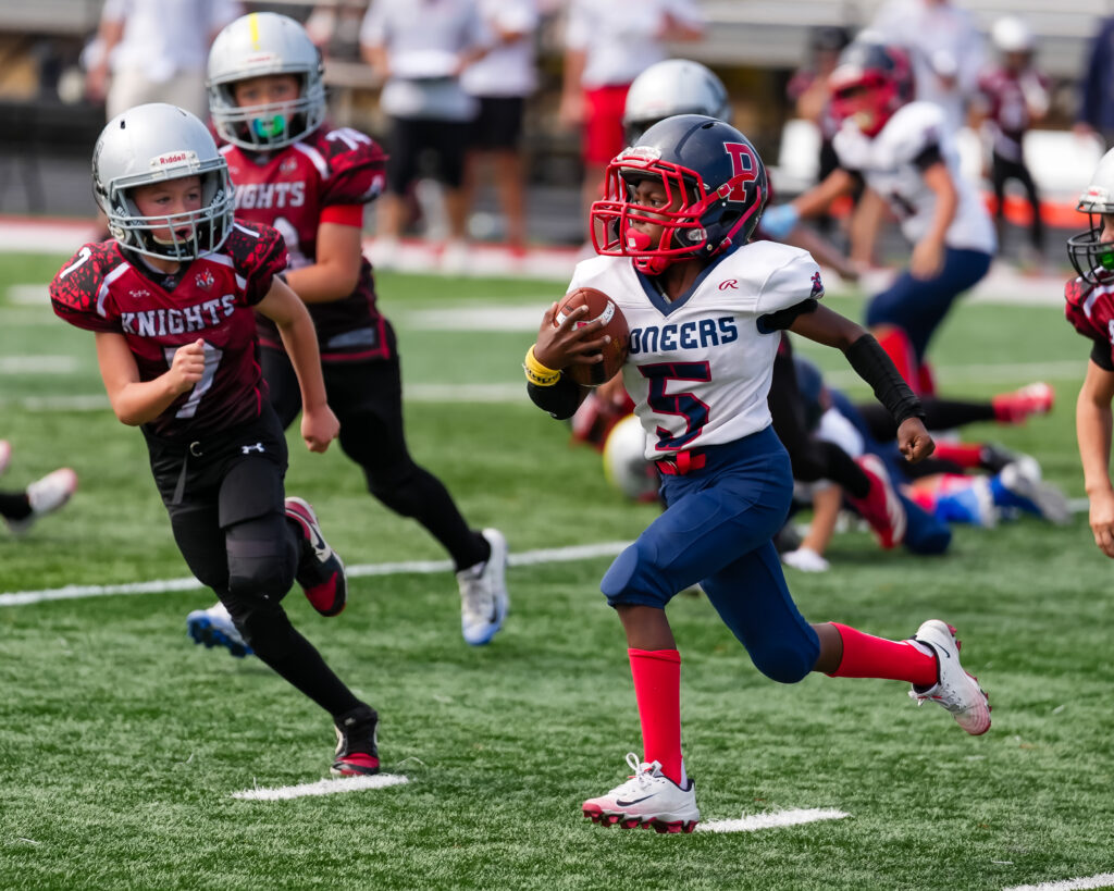 During the Jr. Knights scoring drive, the Pioneers were doing all they could to make stops. Tackles by Kitai Hubbard, NIko Scumaci, Scooby Ballouta, Joey Guest, Sean Johnson and Henry Wade, slowed the Jr. Knights but didnt prevent their march.