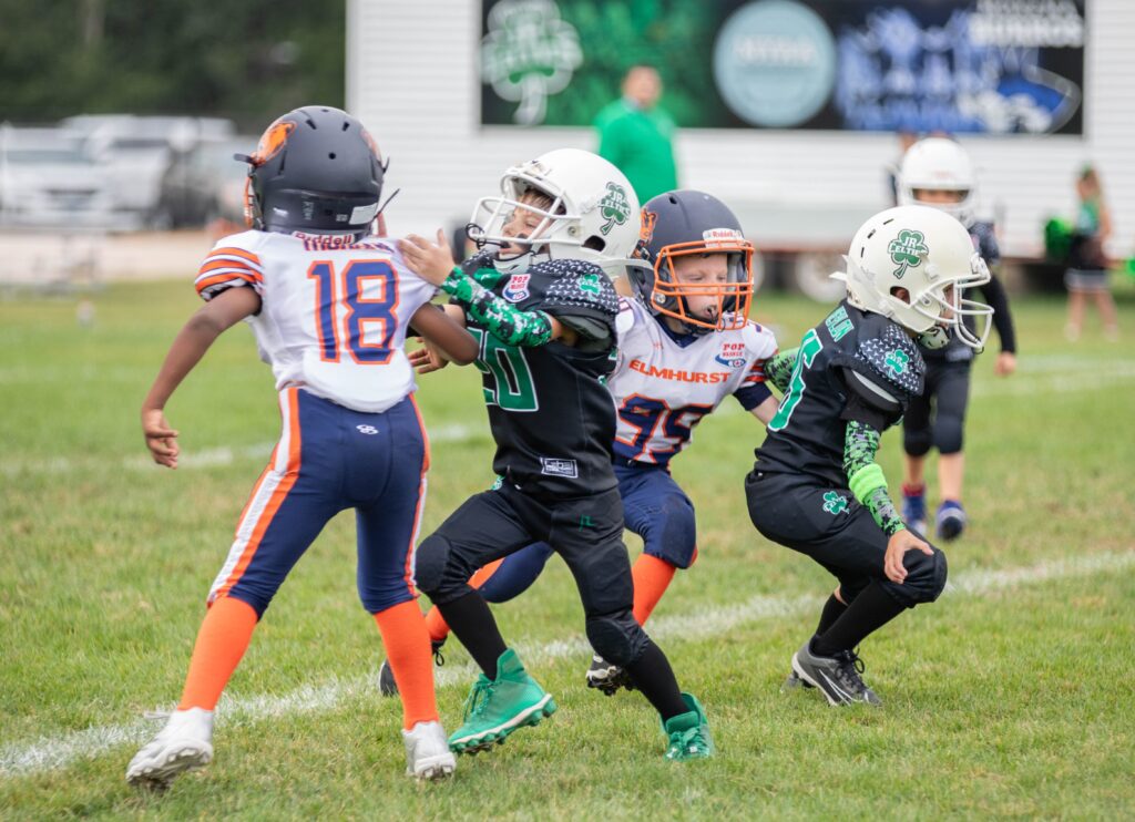The game dynamics for the youngest members of the Pop Warner league place a premium on every play. With a continuously running clock in the eight-minute quarters, the Junior Celtics had their longest possession of the afternoon to open the third-quarter festivities.