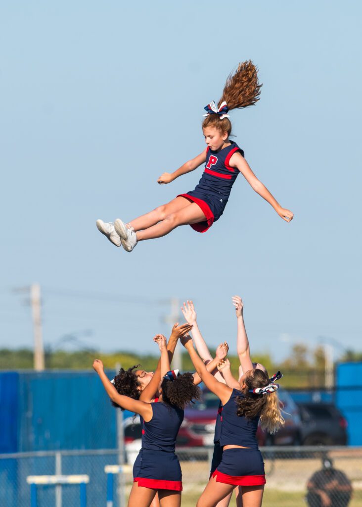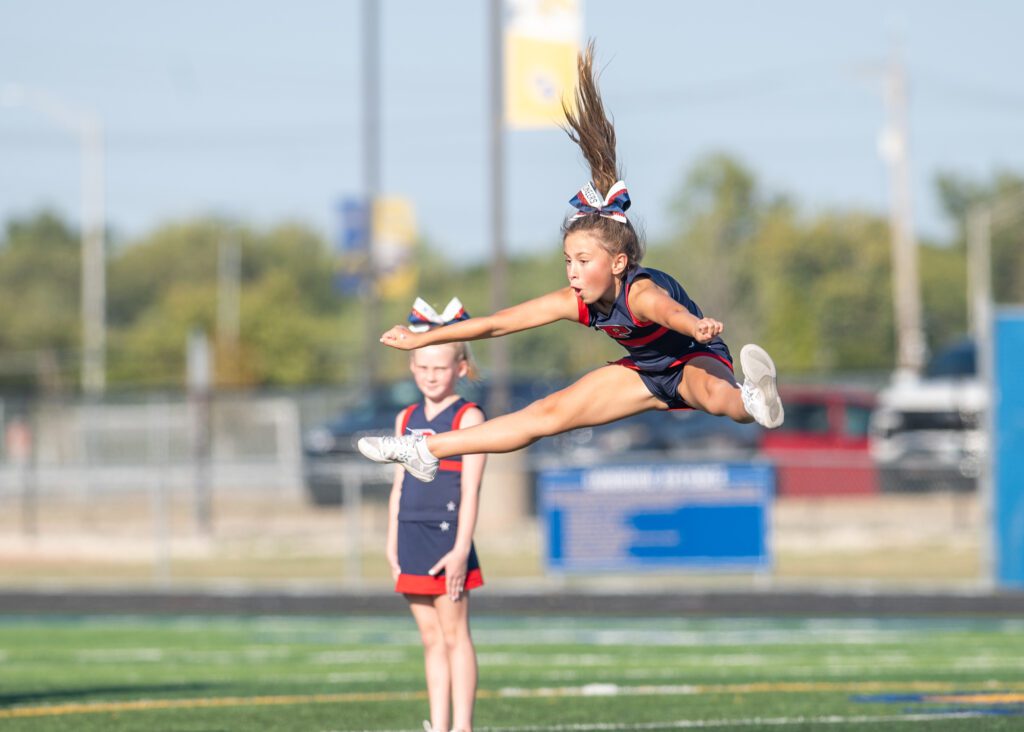 The junior varsity cheerleaders also showed up with numerous excellent routines and cheers to provide support for the football team. The team includes Brielle Lenzen, Natalie Brown, Addison Meyers, Aria Lasky, Ania Cunningham, Ellyana Connors, Frankie Ficaro, Natalie Kehoe, Annabelle Briseno, Annabelle Deloya, Lila Gavin, Leah Janota, Nadine Gazarin, Nora Velez, Charlotte Day, Margot Joda, Ella Kluever, Sydney Scharpf, Ayya Ramadani, Avery Seliga, Maeve Smith, Madison Davis, Sana Kishta, Lily Hahn, Olivia Hufford, Giuliana Bertucci, Annie Milosovic, Hayden Campbell, Katelyn Gallina, Avarie Schwartz, Peyton Meekma, Eivan Willis, Marguerite Ryan and Emilia Krol.