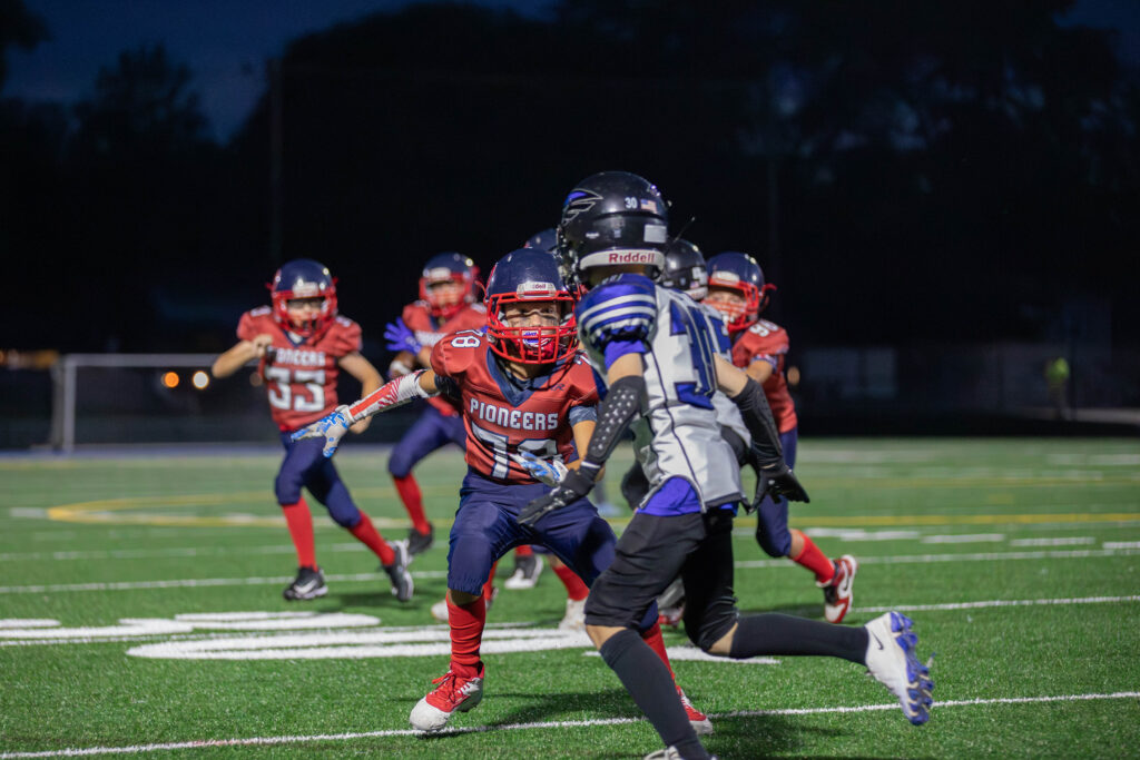 ORLAND PARK— The Junior Varsity Pioneers welcomed the Frankfort Falcons to Schussler Park Field in Orland Park for week two of the Wednesday Night Football League schedule.
