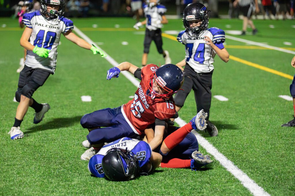 Several Pioneers did have tackles. Mase, Christian Paulson, Kyros, Patterson, Tonra and Noah Cordoba all made stops but the Falcons eventually connected from 9-yards out on a touchdown pass. Choosing to try and tie the game with 33-seconds left. Both sidelines and the crowd watching were silent on the snap.