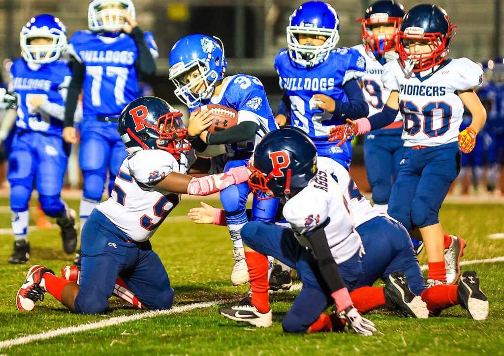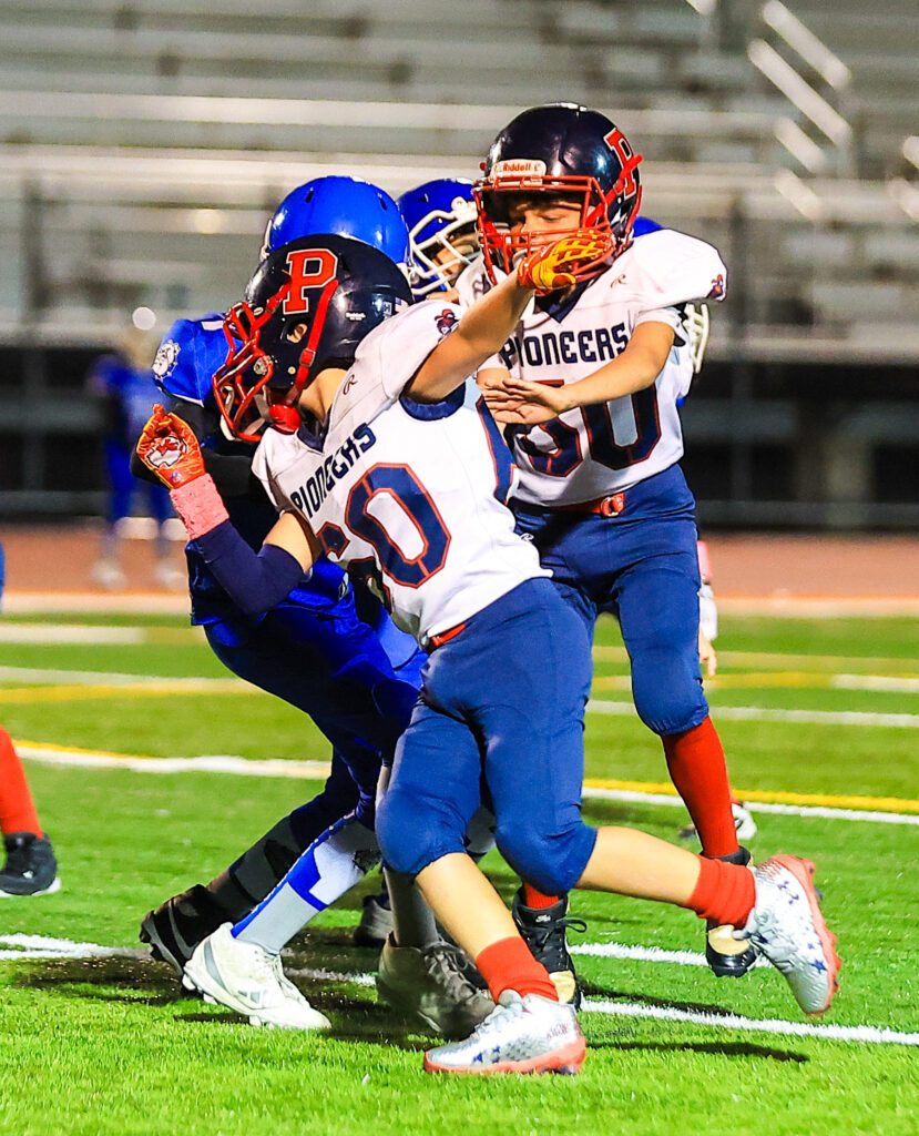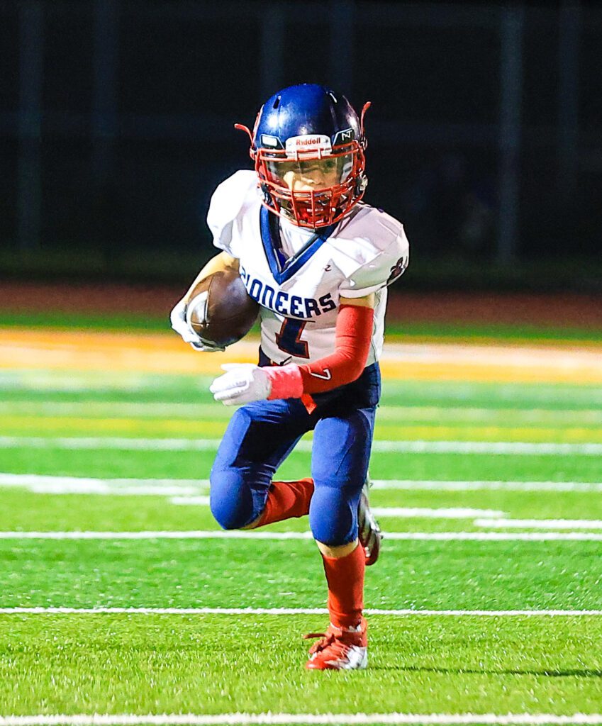 After a long run on their first play, the Bulldogs flipped the field and stood at the Pioneers 26 but that’s as close as they got. Tackles by CJ Hufford, Dominic Maurella, Morandi and Michal Patterson forced a turnover of downs to get the ball back to the Pioneers offense.