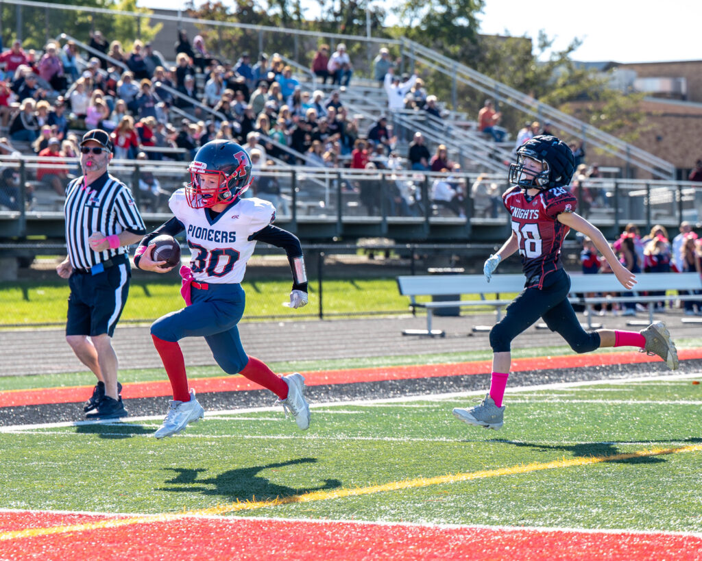 The third quarter mirrored the first two, with the Pioneers’ defense refusing to let up. A mishandled snap by the Jr. Knights nearly resulted in a turnover, and Ellis Hubbard followed with a key tackle to keep New Lenox on their heels.