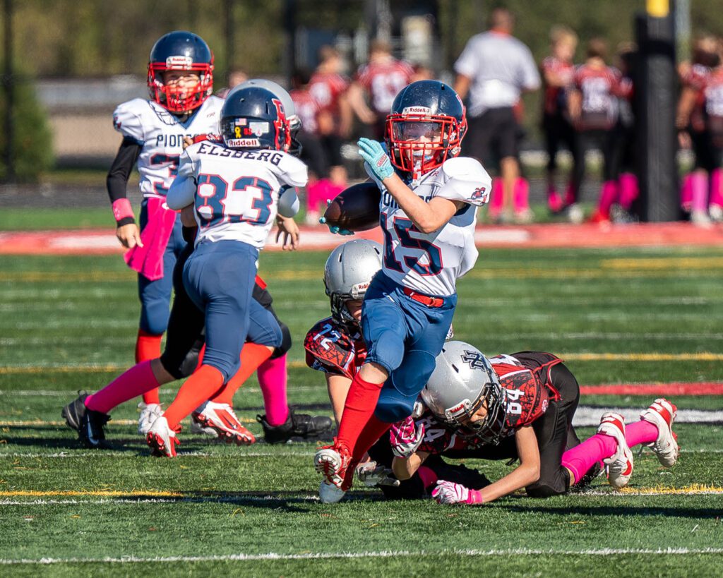 NEW LENOX— As the regular season wrapped up, the Lightweight Orland Park Pioneers delivered a powerful message to the rest of the River Valley Youth Football League: they’re ready for the postseason. With a commanding 24-0 victory over the New Lenox Jr. Knights Red, the Pioneers ended their regular campaign on a high note, showcasing both offensive firepower and defensive resilience.