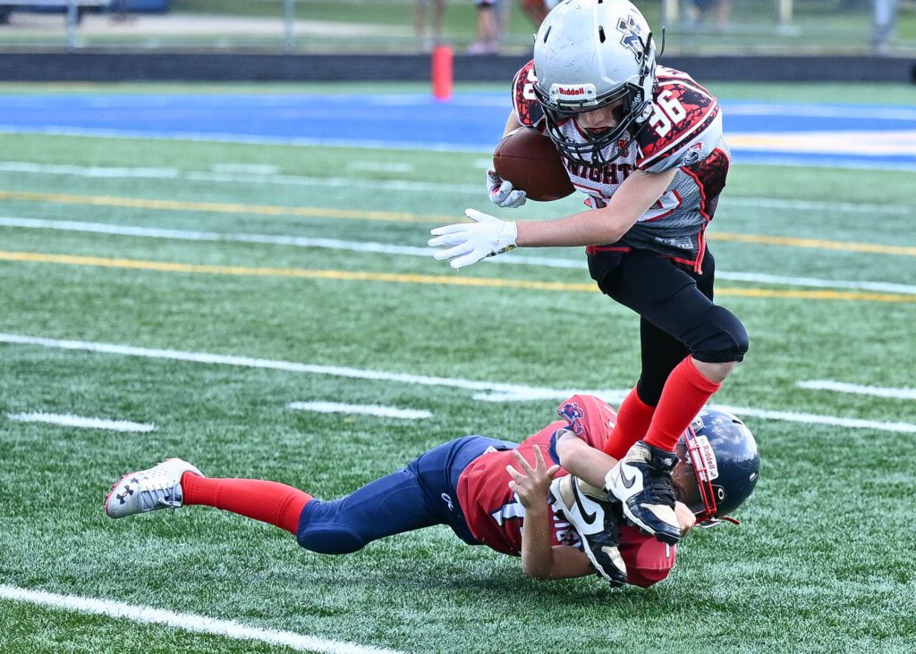 Erwin and Adam Krokos provided the offensive firepower, and a dominant defense pitched its third straight shutout in the 18-0 victory over the New Lenox Jr. Knights in River Valley Youth Football league at Sandburg on Sunday, August 31.