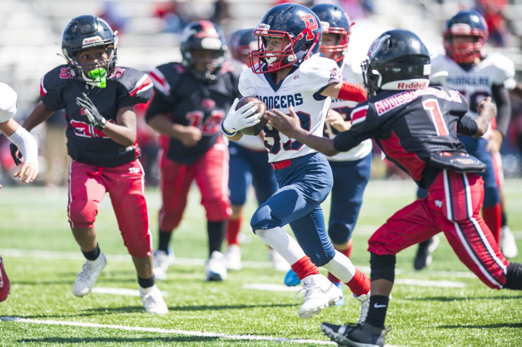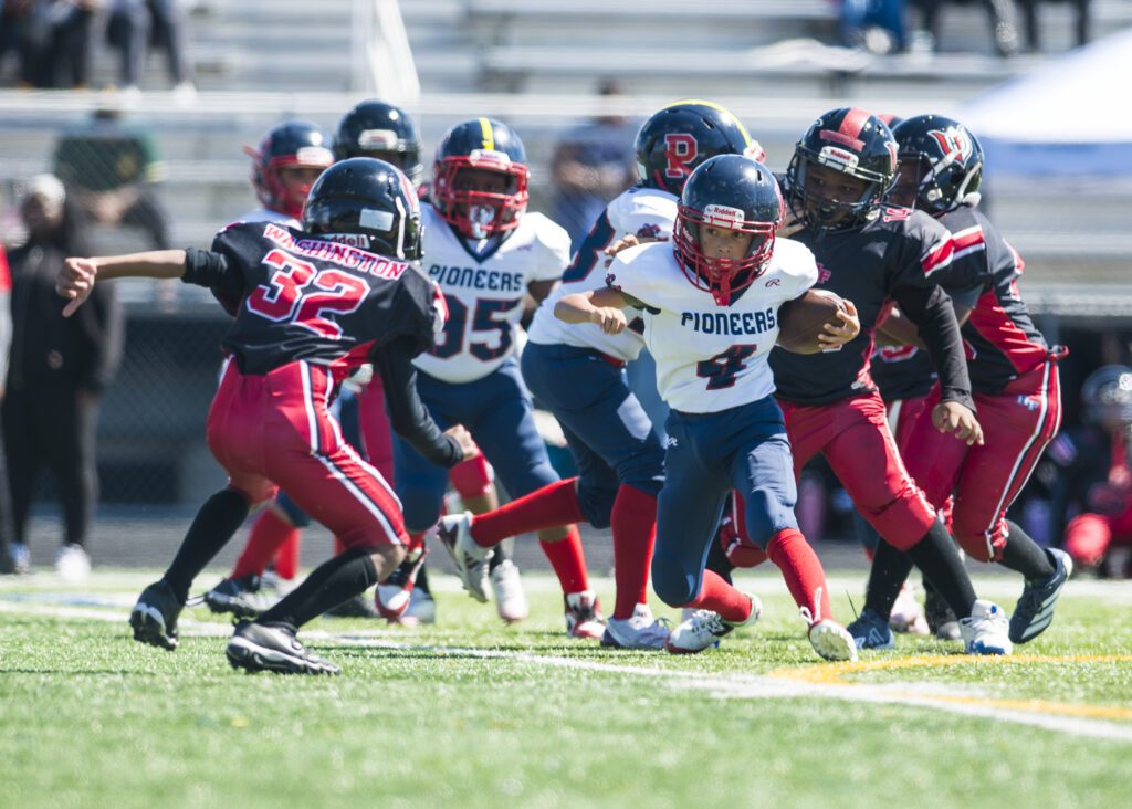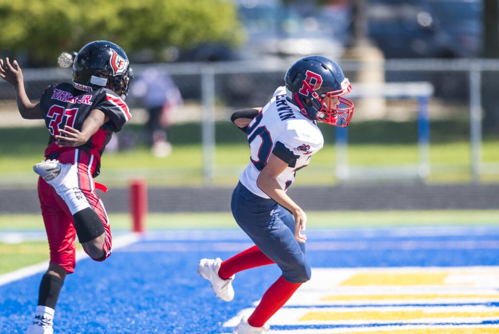 The Lightweights capitalized on big returns and special teams turnovers for the 18-0 Homecoming victory over Homewood-Flossmoor United in River Valley Youth Football league play at Sandburg High School on Sunday, September 7.