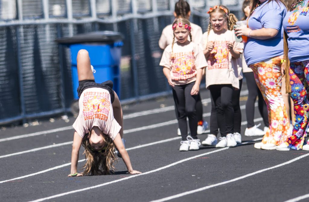 Wearing special tie-dyed peace and love outfits for the Homecoming theme, the cheerleaders also brought beautiful passion and energy to their performances. They are Lucy Bohanek, Kaitlyn Minick, Alexandra Burda, Mabel Lukasiewicz, Elena Schmaling, Adaline Johnson, Zoey France, Emerson Schweikert, Eleanor Koehn, Stella Bristow, Brooklyn Loman, Eila Richter, Aaliyah Medina, Ava Janota, Molly McGeever, Skylar Shlepakov, Makayla Sotelo, Vera Joda, Kara O’Meara, Sophia Molina, Emily Okrasinski, Ainsley Moore, Maevry Harmatys, Marissa Gumuls, Madison Hedger, Morgan Collins, Aleena Badwan, Scarlett Sternberg, Sadie Griffin, Grace Poore, Kennedy Krokos, Olivia Ally, Liliana Holmes, Morgan Burger, Evelyn Byrne, Lillian Fudala, Alaina Holoubek, Anderson Foster, Selena Rios, Gwendolyn Moffatt, Margaret Moffatt, Evelyn Moffatt, Quinn Heinze, Callie Juarez-Radovanovic, Eloise Sarhage, Jenna Michalczewski and Charlotte Dorigan.