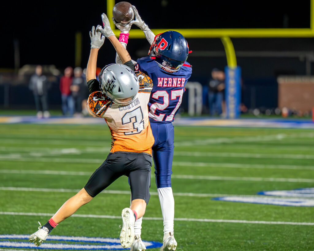 John Werner, who made several strong catches at receiver, continued the superb play with a diving interception that thwarted any hope of a comeback by the Jr Warriors.