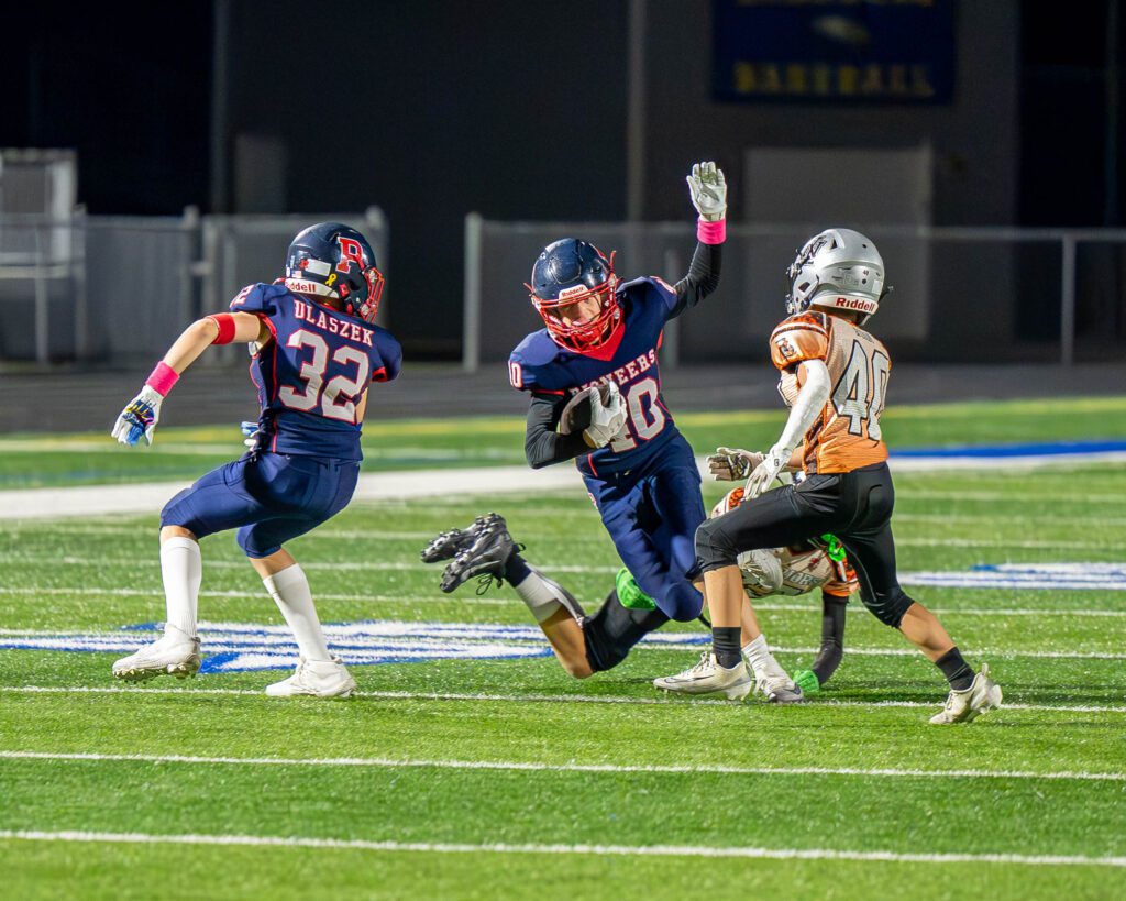 The Orland Park Pioneers Varsity received many standout contributions in the 22-0 playoff semifinal victory. Many of the first-team players provided support and encouragement. Those other players were Syncere Preshon, Riley Atzman, Brock Lenzen, Dylan Butler, Cade McNulty, Charlie Enstrom, Evan Lavelle, Luke Rybak, Ben Snider, Finn Redmond, Jake Marzullo, Logan Helman, Gage Cucci, Drake Ulaszek, Adam Naser, Enzo Angone, Ryan Duckhorn, Malcolm McGonegal, Michael Sraga, Mohammad Abedalrahman, Brandon Castillo, Aidan Rios, Ahmed Ali, Steven Mullins, Michael Stefancic, Nicholas Hertzog, Camden Czarnecki, Julian Trevino, Ryan Pempek, Erik Baran, Brian Curran and Qais Naser.
