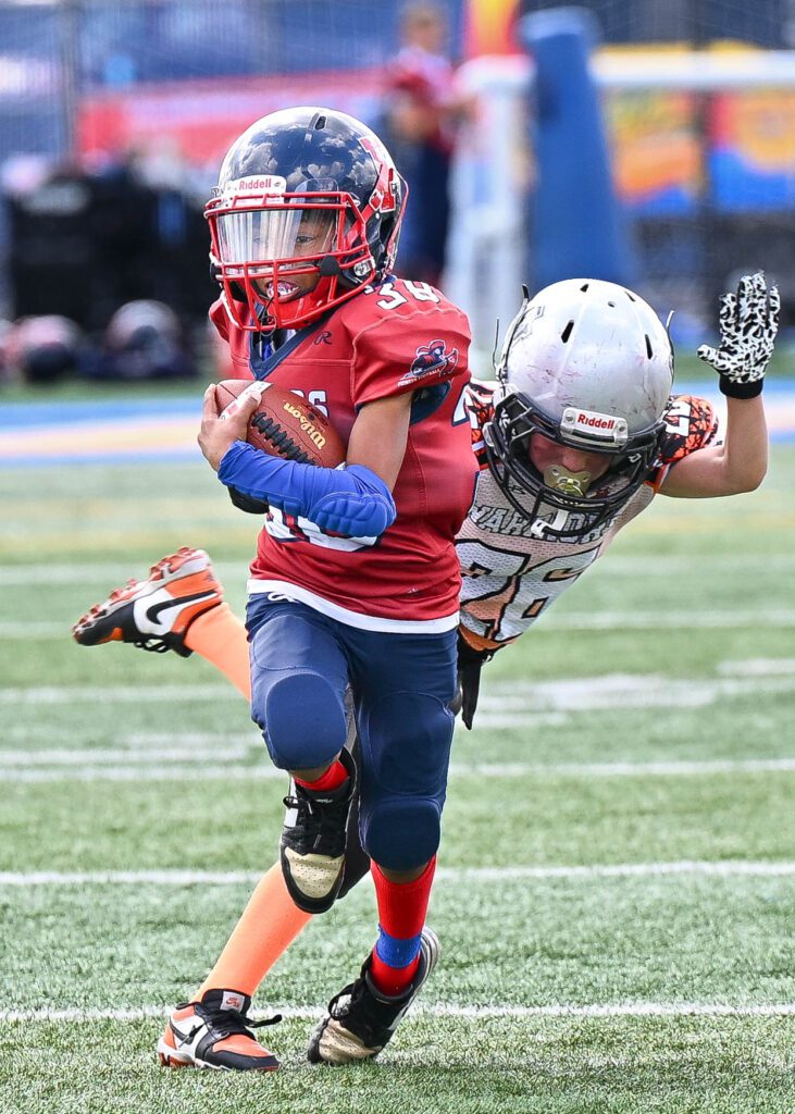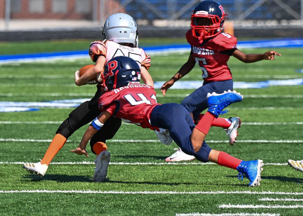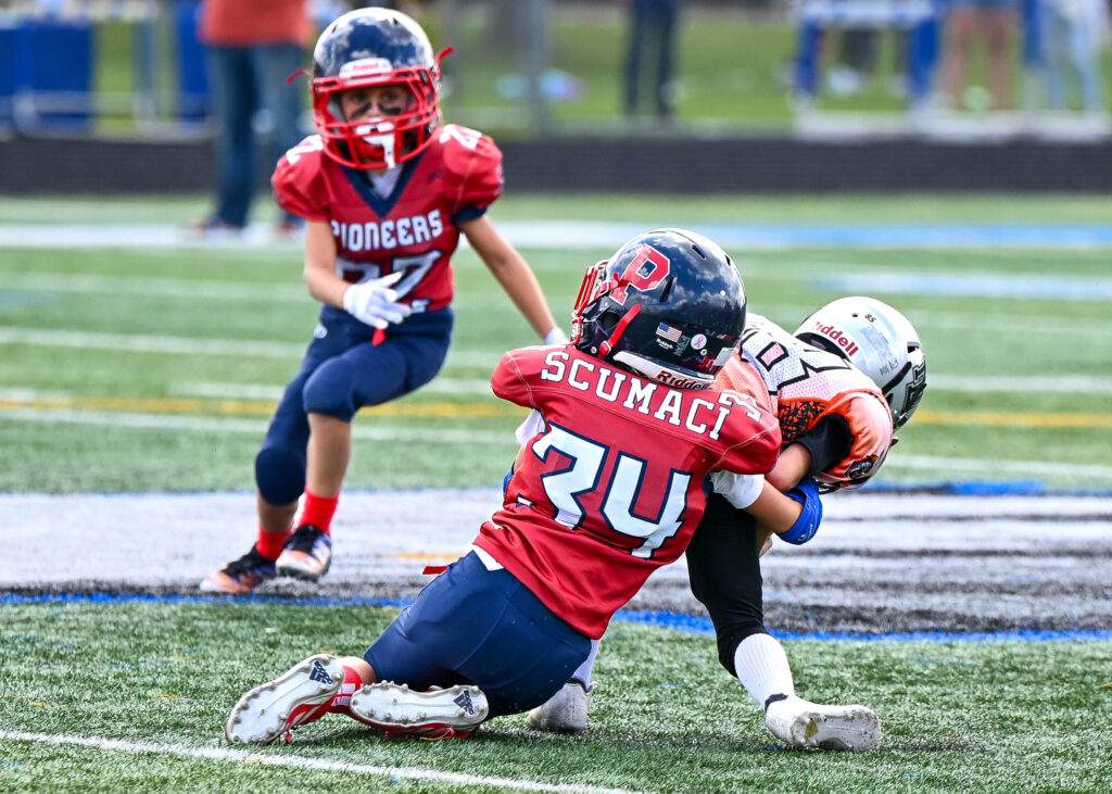Again, the Jr. Warriors began their march towards finding the tying score. The 10-play series began in the third quarter and continued into the fourth, heading directly to the Pioneers endzone. Tackles by Ward, Ballouta, Wade, Richardson, Guest, Johnson and Kitai Hubbard slowed the Jr. Warriors but it was a smashing hit by Scumaci that allowed Hubbard to make a fourth down stop and give the football back to the Pioneers offense midway through the forth quarter.