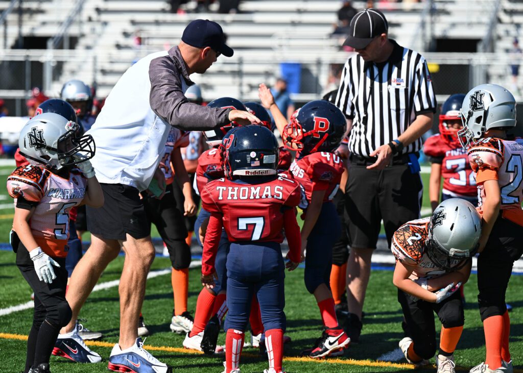 Fith Quarter play saw the Pioneers give lots of efforts on both sudes of the ball during the barrage of touchdowns. Too much speed by the Jr. Warriors saw the Pioneers fall behind quickly, but the Pioneers still manage some tackles by Vincent LaPapa, Jax Thomas, Max Kalker and Mahmoud Hinnawi..