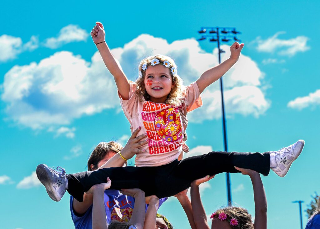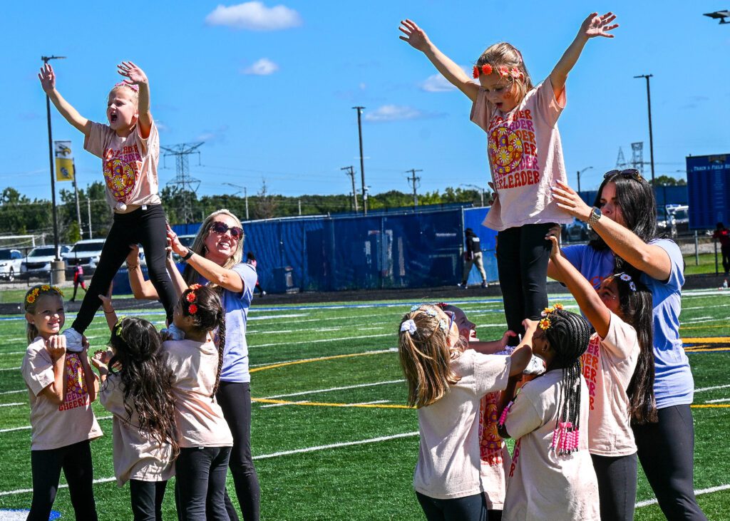 The Orland Park Pioneers’ cheerleading team entertained the fans by getting some extra work in on plot of grass that was roped off right in front of the main grandstand, allowing the cheerleaders an opportunity to practice their routines and do cartwheels. The roster includes Normandy Golden, Maddie Battaglia, Everleigh Holdsworth, Hazel Nichols, Emersyn Ramirez, Piper Darin, Savannah Molina, Eva Garza-Perez, Olivia Raggio, Morgan Griffin, Nella Leithleiter, Charlotte Koehn, Lanie Hermann, Emmy Burger, Mia Mizera, Meghan Shilney, Lea Barbee, Chloe Fregeau, Haley Erwin, Eva Aubin, Siena Lang, Olivia Peters, Sofie Annerino, Hailey Valan, Jessa Alvarez, Grace Latronica, Ava Kolodziej and Emma Podoreski.