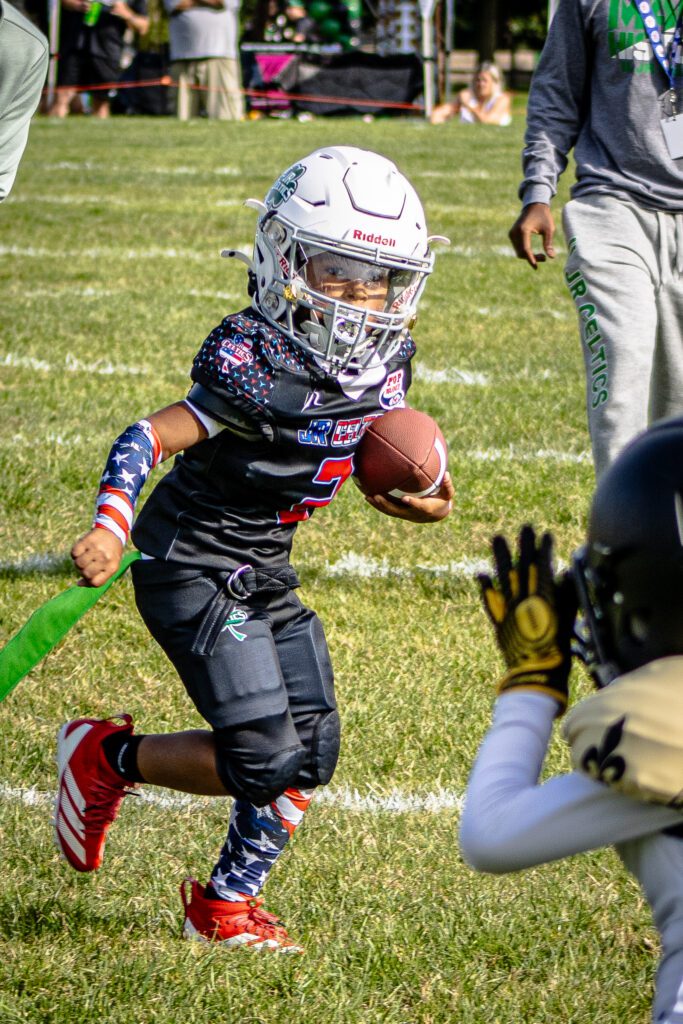 The star of the game was Kaleb Neylon. His game effort produced three touchdown runs of 45-, 65- and 7-yards catapulting the Jr. Celtics into a lead the Saints couldn’t overcome. He also added other runs that picked up good chunks.