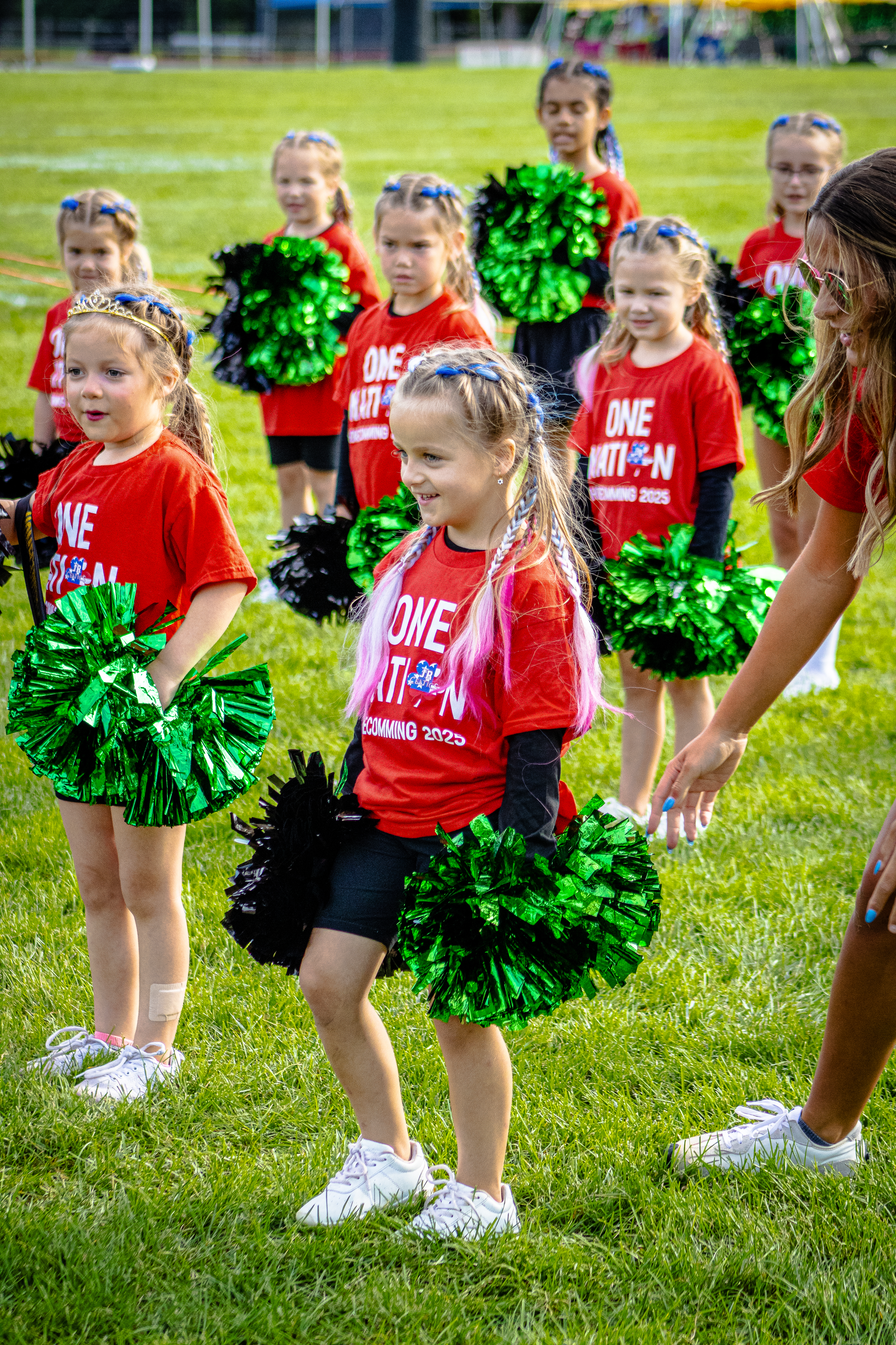 The Jr. Celtic Mitey Mite and Sideline Cheerleaders were also joining in in the homecoming festivities. Lining up along the Blowup helmet as part of the players entrance onto the field while also providing cheers throughout the game they included Peyton Leo-Johnson, Dani Samanich, Vivienne Brunette, Madisyn Singleton, Brooklyn Firlit, Cora Smiley, Caroline Murphy, Kelsey Niemeyer, Mila Cox, Brooke Copack, Juliana Jachymiak and Lucille Nelson.