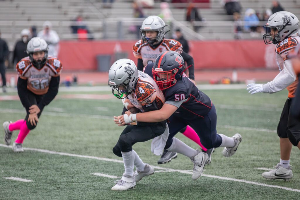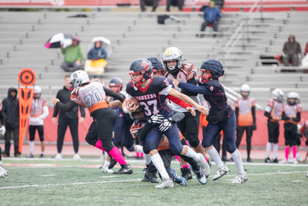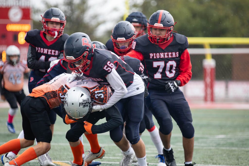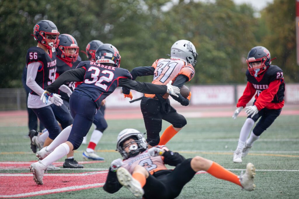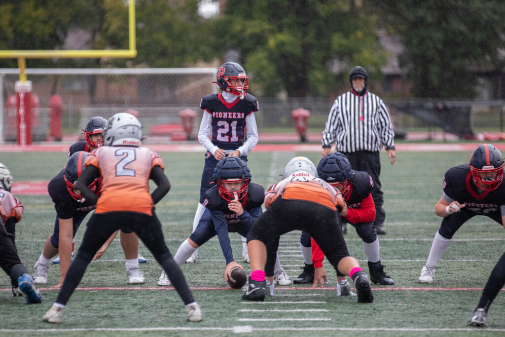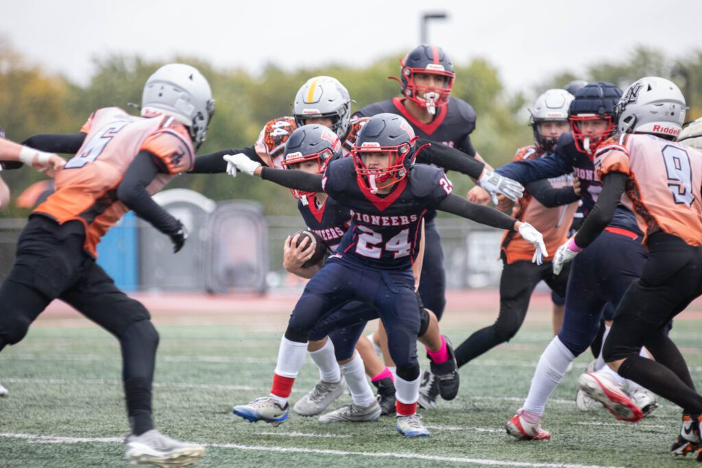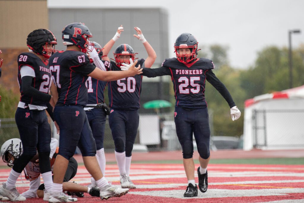 In the varsity game, the Pioneers rode the fast and elusive legs of Enzo Angone to a thrilling 24-6 victory over the Warriors at Homewood-Flossmoor High School. Angone fueled the victory, scoring three touchdowns to help the Pioneers advance to the second round of the playoffs.