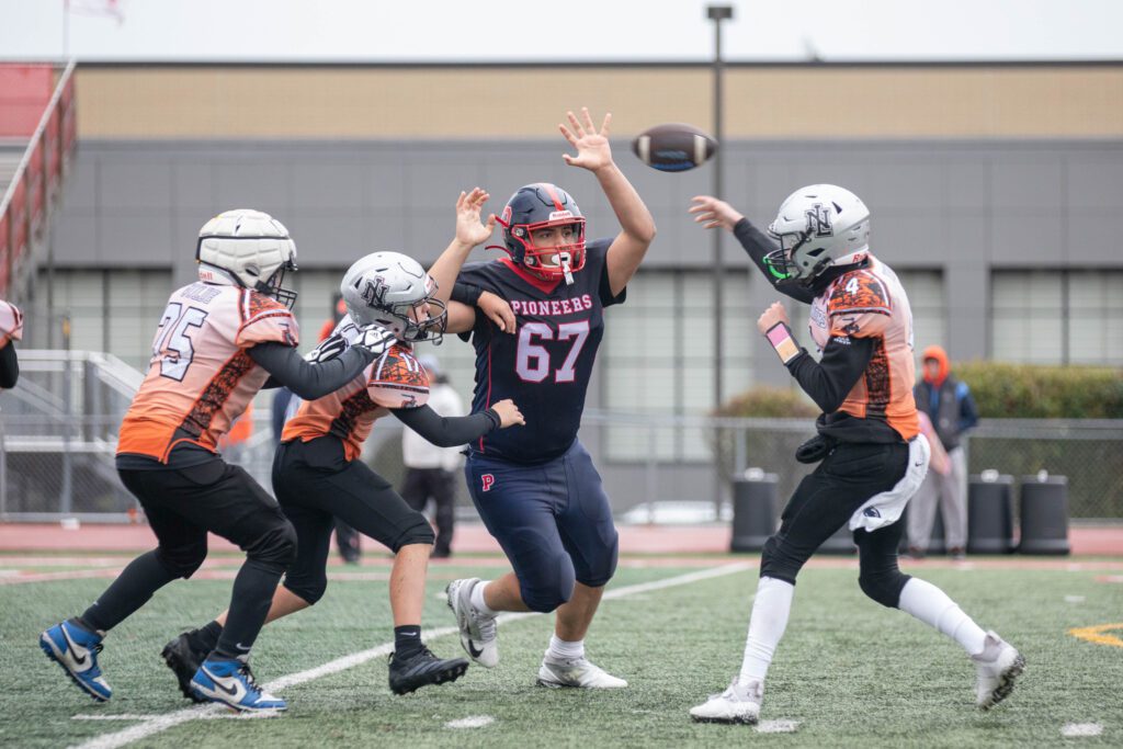 It was the Pioneers’ defense that took centerstage next on the Warriors’ possession, when Jake Marzullo had a big tackle on fourth down at the one-yard line. The Pioneers took advantage of the excellent field position as Angone bulldozed his way up the middle for a 1-yard TD run to pad the lead to 16-0.