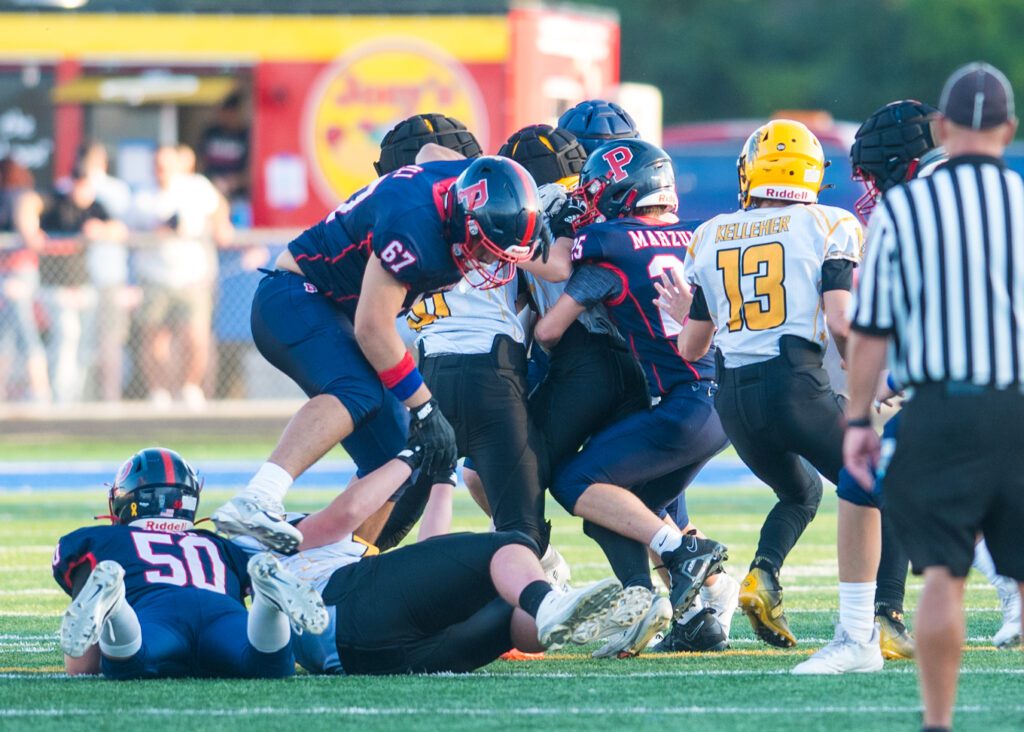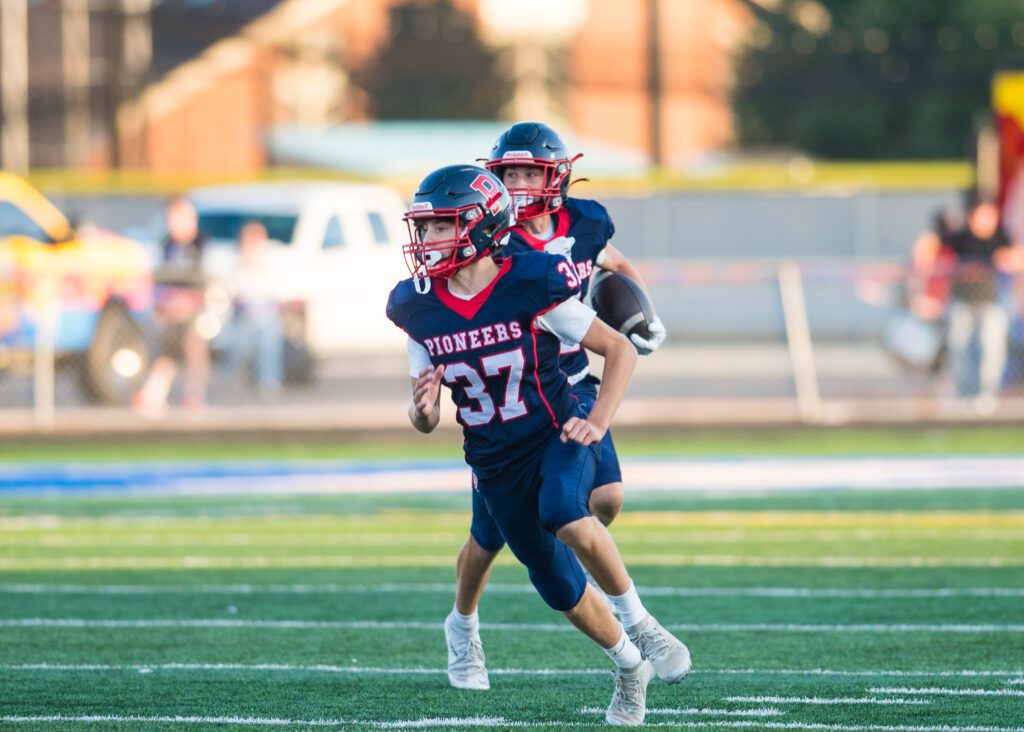 In the fifth-quarter game – only the second fifth-quarter game of the day – the Pioneers had strong efforts from several players. Yousif Dahdal intercepted a pass with 6:07 left in the defensive portion of the Pioneers’ segment. Gavin Loman just missed earning an interception as the pass hit his fingertips. Diego Aguilar had two big tackles early in the game. David Burgert burst loose for a long run to the opponents’ 3-yard line, while Ryan Pempek ended the drive with a touchdown.