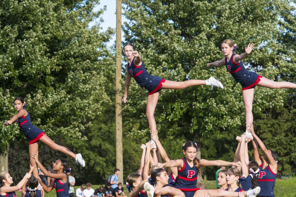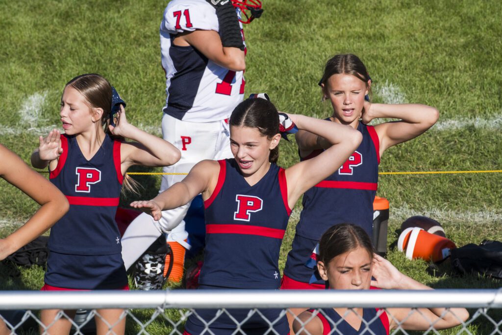 The varsity cheerleading team helped keep the momentum on the side of the visiting team with their routes. The team consists of Oliwia Burda, Aviana Briseno, Aubrey Baran, Brooklyn Richardson, Hailey McDonald, Keira Barrera, Ava Mendoza, Kaelyn Albright, Jordyn Shamma, Brittney Blazys, Brooke Blazys, Gia Parisi, Avery Nugent, Arianna Ramadani, Layla Jeffries, Giulia Cangelosi, Madalyn Marable, Flora Lane, Sofia Castillo, Julia Stekala, Violet Fino, Riley Meekma, Serena Murray and Sofia Murray.