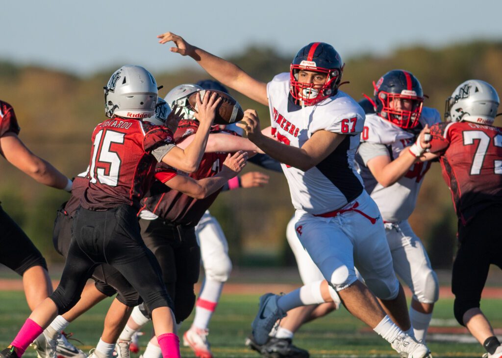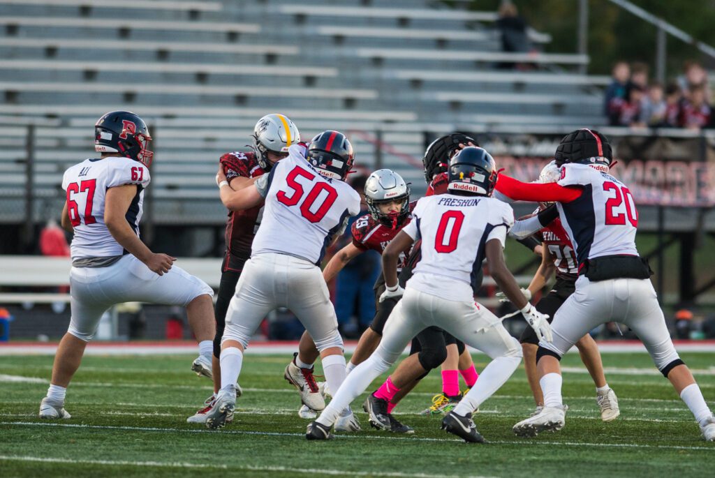 Jake Marzullo and Angone combined for a huge stop on first and goal. Defensive linemen Ahmed Ali, Michael Sraga and Qais Naser also stood out for their pressure at the point of attack.