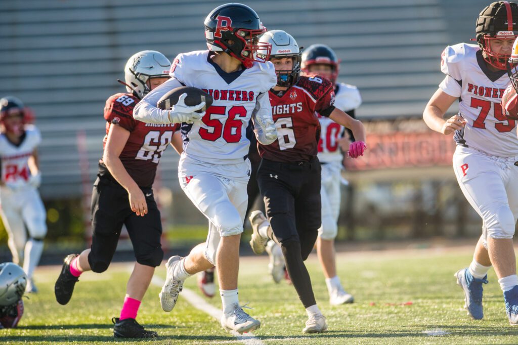 The Pioneers were also undone by some very questionable and seemingly one-sided officiating that created a vast disparity in penalties, and a clearly illegal forward pass on the Jr Knights’ second touchdown that was not called.